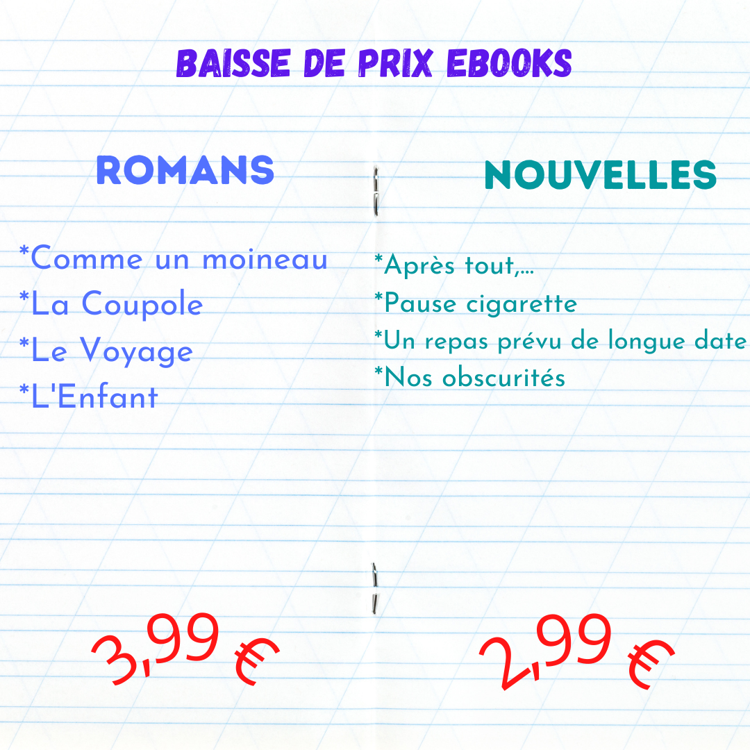 J’ai décidé d’opérer une baisse significative du prix numérique de mes ouvrages en autoédition, afin de les harmoniser et de les rendre accessibles à toutes les bourses. Partagez ;) Partager sur X(ouvre dans une nouvelle fenêtre) X Partager sur Facebook(ouvre dans une nouvelle fenêtre) Facebook Envoyer un lien par e-mail à un ami(ouvre dans une nouvelle fenêtre) E-mail J’aime chargement… Articles similaires