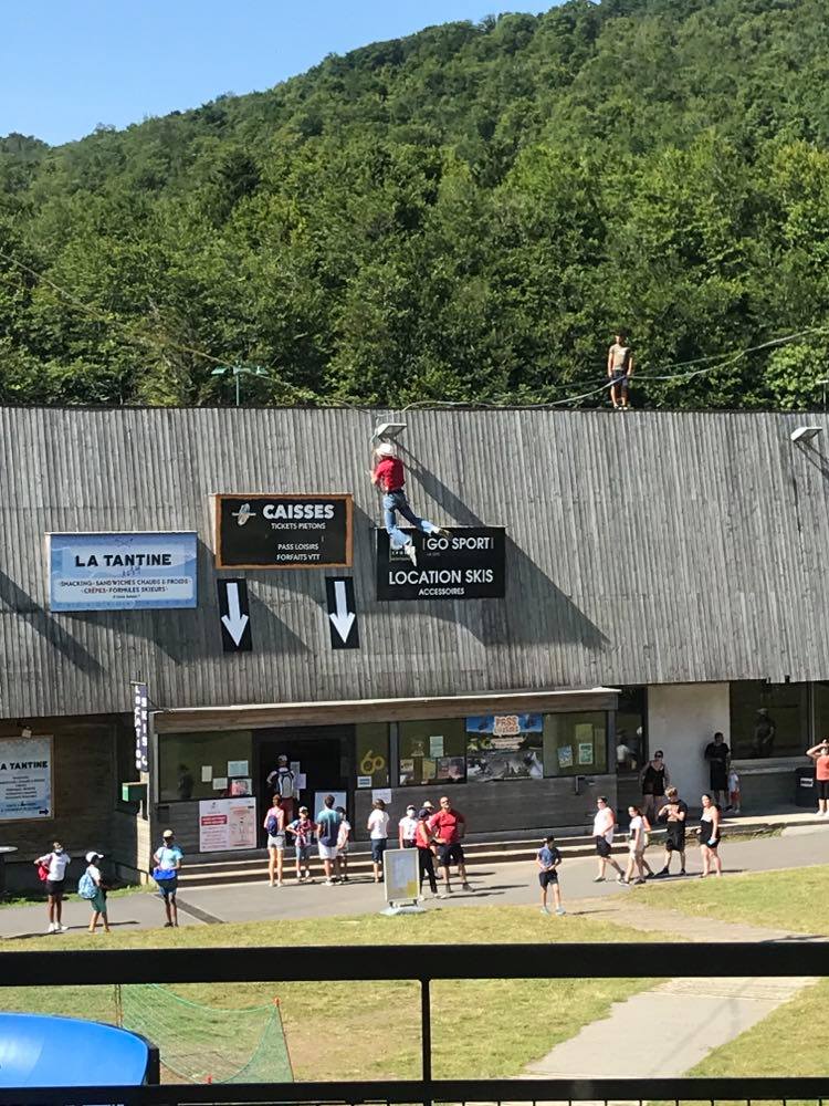 Juste derrière nous se tenait une démonstration impressionnante de funambulisme et de jonglage sur fil.