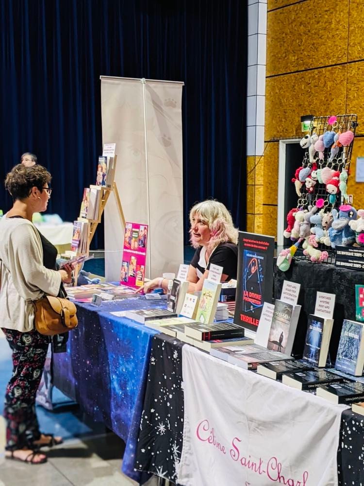 Je disposais de deux grandes tables, ce qui m’a permis de bien présenter tous mes ouvrages. La fréquentation a été assez variable selon le jour et le moment de la journée, mais les visiteurs étaient disposés à discuter et à découvrir les livres des auteurs présents. Certains ont même passé la journée entière sur le salon et ont pris le temps de regarder tous les ouvrages de tous les stands !