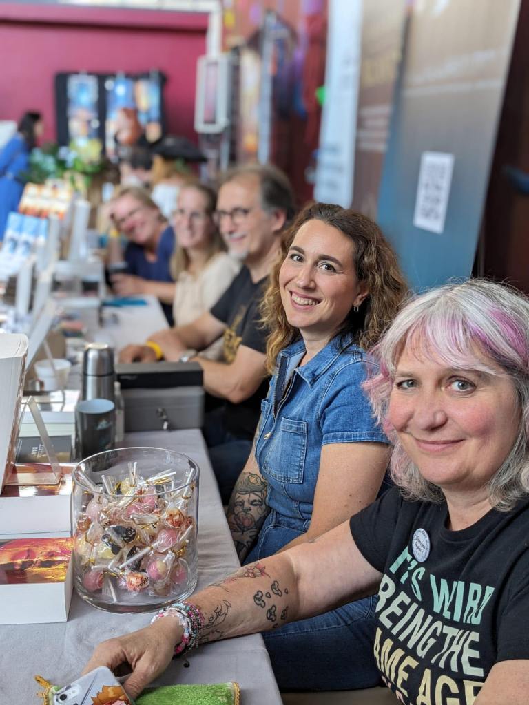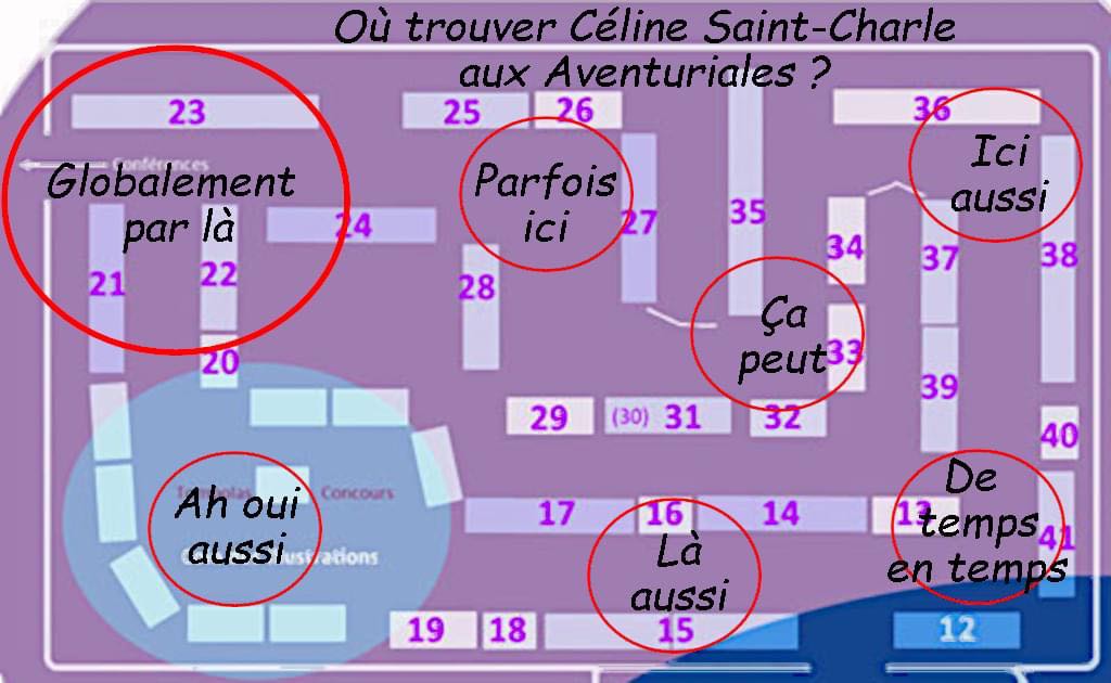 Toute l’équipe des Aventuriales avec leur passion, leur dynamisme et leur dévouement kilométrique (aller-retour jusqu’à Orléans samedi matin pour l’une d’elles, afin de récupérer des livres indispensables à la bonne tenue du salon).