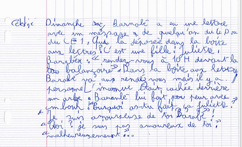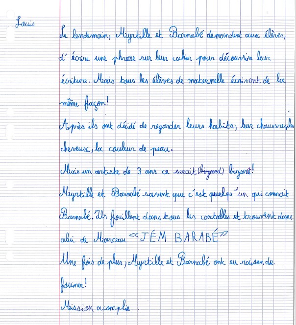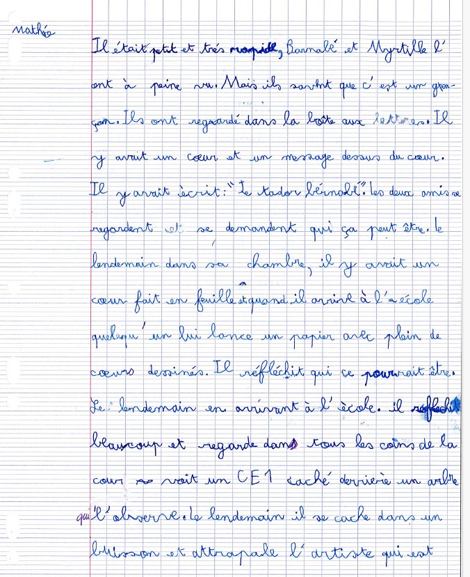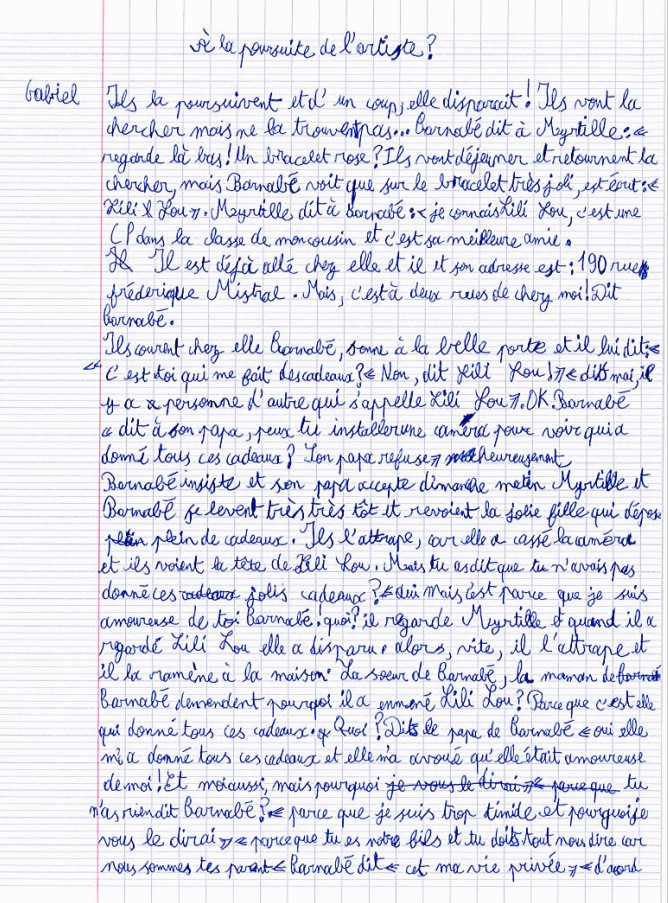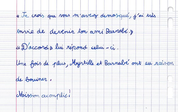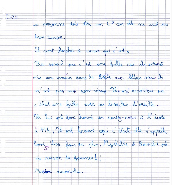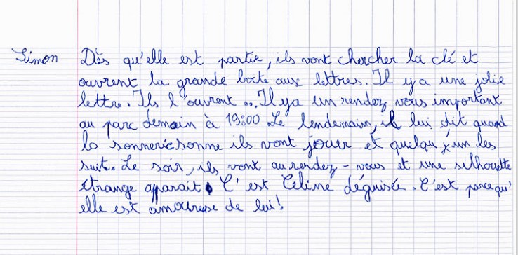 Les enfants avaient un résumé succinct de l’histoire et devaient inventer leur fin. Voici ce qu’ils avaient :