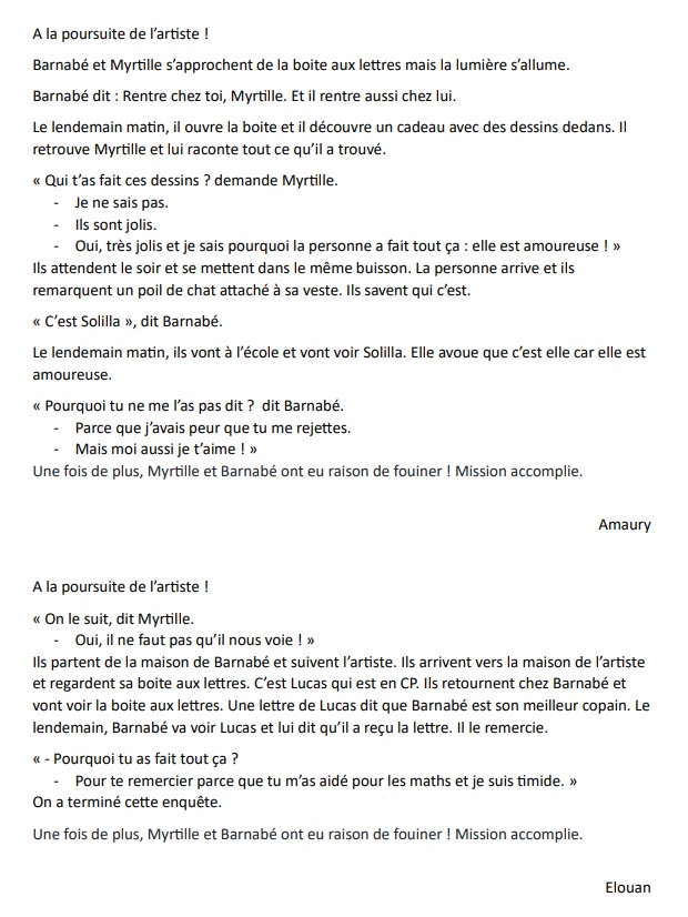 Aujourd’hui, nous allons découvrir les productions d’une classe de CM1-CM2, avec des dessins illustrant certains textes.