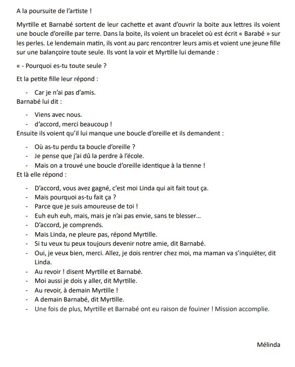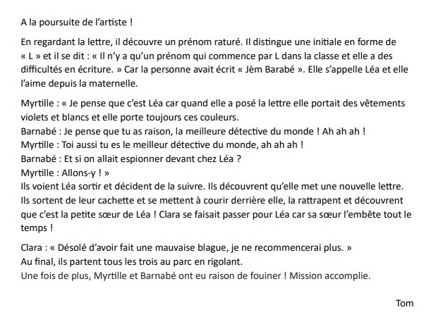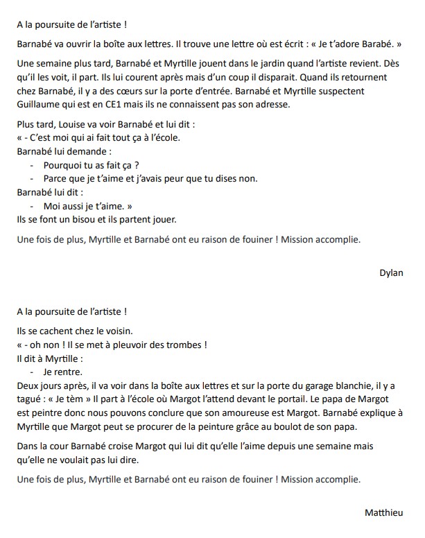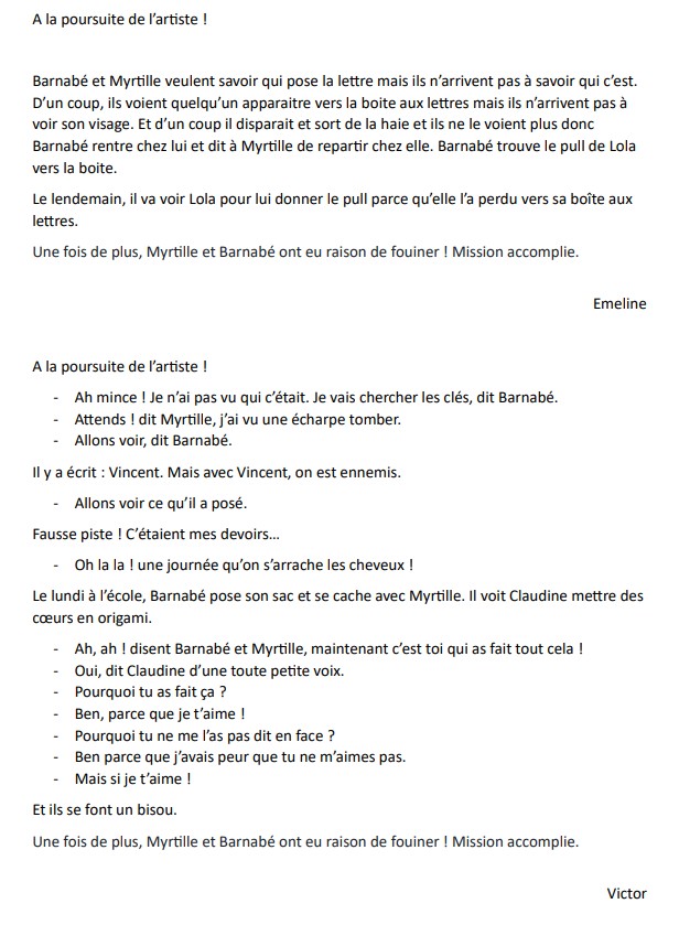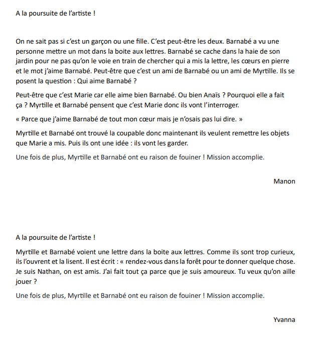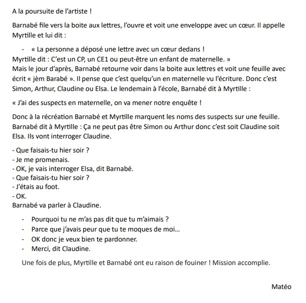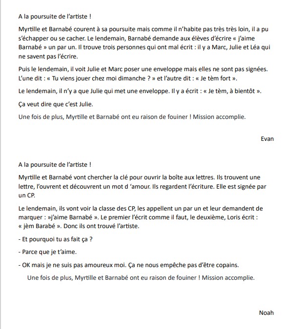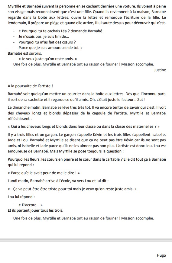 Ils découvrent que seuls les enfants de la maternelle et ceux de leur classe de CP-CE1 ont pu glisser le cœur dans le cartable de Barnabé.
